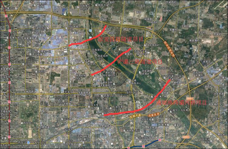我公司承擔的西安浐灞生態(tài)區(qū)規(guī)劃區(qū)域“一橋兩隧”項目修建性詳細規(guī)劃方案設(shè)計,設(shè)計內(nèi)容包括:錦堤六路、歐亞四路穿灞河隧道工程項目(隧道約1886-2596m);錦堤三路、浐灞三路穿灞河、浐河隧道工程項目(隧道約2194m);通塬路跨灞河橋工程項目(橋梁約820m)。工程總投資約26億元。