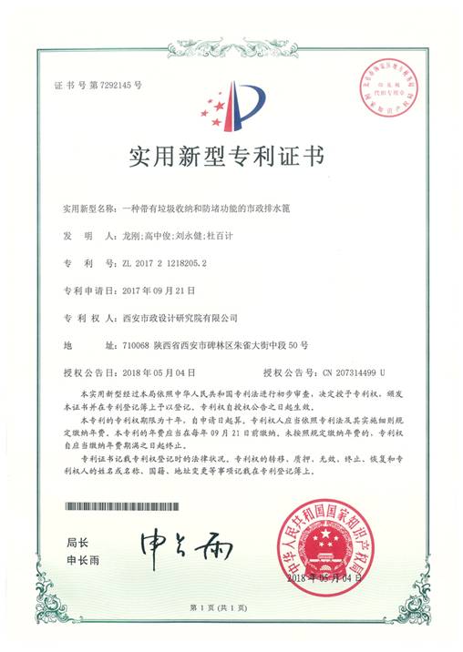 眾所周知,市政排水系統(tǒng)一般設(shè)置于城市道路、橋梁表面較低處,由于常規(guī)柵格式市政排水篦柵格較大,落葉及其它城市垃圾在風(fēng)吹、環(huán)衛(wèi)灑水、清掃及雨水天氣路面雨水?dāng)y帶等多種情況下易于進(jìn)入排水系統(tǒng),導(dǎo)致排水系統(tǒng)堵塞失效或排水井底部垃圾積聚,進(jìn)而發(fā)酵、散發(fā)惡臭,嚴(yán)重影響城市形象?;诖耍夜狙邪l(fā)了“一種帶有垃圾收納和防堵功能的市政排水篦”,近日獲得國(guó)家知識(shí)產(chǎn)權(quán)局頒發(fā)的國(guó)家實(shí)用新型專利證書。