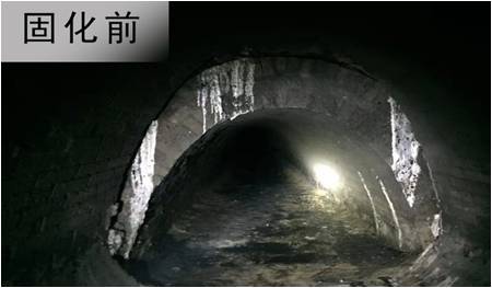 由于磚涵橫跨f7地裂縫錯(cuò)臺(tái)處位于雁塔路西側(cè)快道,該地段交通量非常大,不具備破路施工條件。為徹底有效解決雁塔路磚涵錯(cuò)臺(tái)、滲漏等病害,我公司組織技術(shù)人員對(duì)磚涵錯(cuò)臺(tái)處及周 圍土體進(jìn)行反復(fù)研究,制定了修復(fù)方案,并邀請(qǐng)業(yè)內(nèi)專家對(duì)方案進(jìn)行了評(píng)審。根據(jù)方案評(píng)審會(huì)意見(jiàn),確定本次修復(fù)僅對(duì)地裂縫相鄰兩處檢查井之間的管涵進(jìn)行非開(kāi)挖修復(fù),即現(xiàn)狀磚涵上游堵水-清淤-裂縫1m范圍內(nèi)進(jìn)行化學(xué)注漿-裂縫處注化學(xué)密封膏-錯(cuò)縫前后8m緩沖帶處理-磚涵倒角弧面處理-管道清洗-磚涵整體防水噴涂-紫外線光固化修復(fù)處理。利用此項(xiàng)非開(kāi)挖修復(fù)工藝,僅用21小時(shí)便完成了全部修復(fù)施工,經(jīng)過(guò)修復(fù)的管道內(nèi)壁非常順滑,現(xiàn)已滿足排水要求。