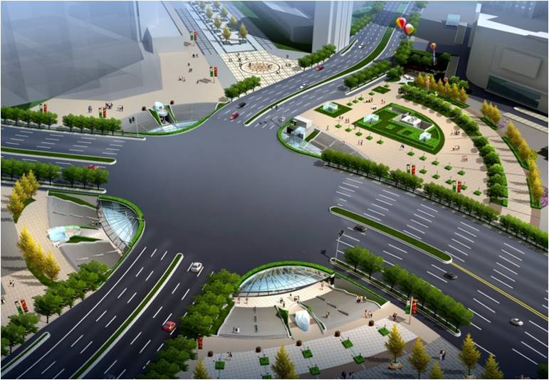 本次改造應用BIM技術,涉及道路交通、地下人行過街、地下商業(yè)開發(fā)等三部分工程。改造后的堡子村盤道將地上地下人行交通、城市軌道交通和商業(yè)開發(fā)有機地結(jié)合為一體,保證了交通順暢和周邊地塊的合理開發(fā)。