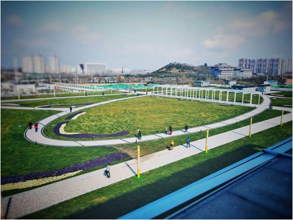 設(shè)計(jì)中克服現(xiàn)有屋頂上翻梁排水問題,在滿足屋頂承重荷載要求的前提下保證“高顏值”的景觀效果。屋頂種植土以下排水采用盲管加排水層找坡處理,綠化種植土采用新型輕質(zhì)種植土以保證種植土厚度。整體設(shè)計(jì)突顯屋頂景觀空間開放度,體現(xiàn)生態(tài)自然的開闊草坪加地被花卉的景觀效果。經(jīng)過3個(gè)多月不懈努力,圓滿完成了設(shè)計(jì)任務(wù)。北客站北廣場經(jīng)過此次設(shè)計(jì)改造,提升了廣場顏值,優(yōu)化了出行環(huán)境。