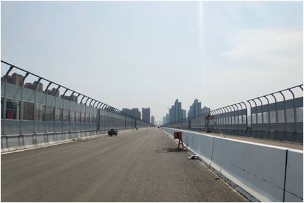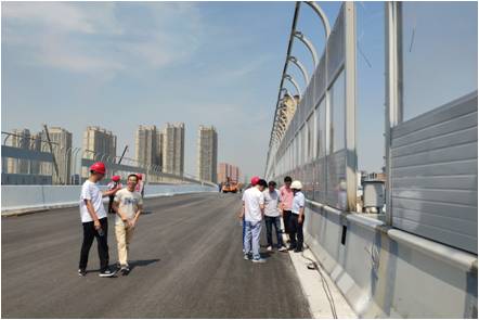 在后期施工配合中,項(xiàng)目設(shè)計(jì)組成員積極主動(dòng)為建設(shè)方與施工單位提供服務(wù),解決施工中遇到的技術(shù)難題,受到了建設(shè)方與施工單位的一致認(rèn)可。在昆明路西段即將建成之際,我公司一分院項(xiàng)目設(shè)計(jì)組成員主動(dòng)赴現(xiàn)場(chǎng)回訪,協(xié)助施工單位解決鋪裝、護(hù)欄安裝、聲屏障安裝過(guò)程中遇到的問(wèn)題,為昆明路東段后續(xù)施工提供技術(shù)支持與服務(wù),同時(shí)也為我公司承攬此類項(xiàng)目積累寶貴經(jīng)驗(yàn)。