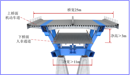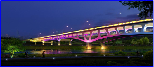 香槐六路灞河橋設(shè)計(jì)將現(xiàn)代工藝融入到傳統(tǒng)桁架造型之中,集“顏值”與“內(nèi)涵”于一身,具有“新”、“奇”、“便”的特點(diǎn):“新”即雙層橋面,人車分行;“奇”即造型與橋下景觀遙相呼應(yīng);“便”即為城市東北部地區(qū)提供了一條快速通道。