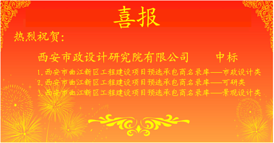 我公司成功入庫曲江新區(qū)“市政設(shè)計(jì)類”、“可研類”、“景觀設(shè)計(jì)類”工程建設(shè)項(xiàng)目預(yù)選承包商名錄 我公司交通分院與計(jì)劃經(jīng)營部、景觀園林分院齊心協(xié)力、通力合作,在參與“西安市曲江新區(qū)工程建設(shè)項(xiàng)目預(yù)選承包商名錄庫”兩階段投標(biāo)的40多家競爭企業(yè)中脫穎而出,成功入庫。