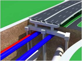 該立交位于城市主要交通干道,地面交通繁忙,地下管線密布,同時(shí)與地鐵四號(hào)線交叉,設(shè)計(jì)難度較大。項(xiàng)目設(shè)計(jì)組采用跨越地鐵隧道及管線的三種類型異形承臺(tái)設(shè)計(jì),有效解決了管線、地鐵與樁基平面沖突問(wèn)題,采用大跨徑寬幅漸變連續(xù)鋼箱梁設(shè)計(jì),便于施工,大幅節(jié)約工程投資,取得了較好經(jīng)濟(jì)效益和社會(huì)效益。