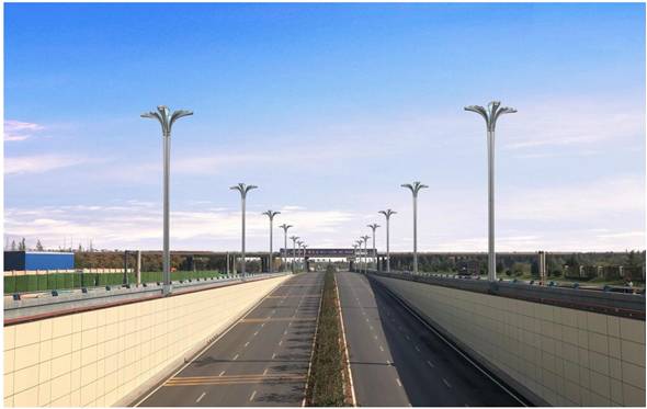 本次工程設(shè)計范圍為現(xiàn)狀路、下穿隧道、高速出口交匯處,設(shè)計考慮因素多且地下管線復雜,2019年1月,我公司土建環(huán)境分院成立了由電氣專業(yè)牽頭的項目設(shè)計組立即展開工作,積極協(xié)調(diào),收集資料,在工期緊張的情況下,項目設(shè)計組成員深夜赴現(xiàn)場踏勘、測量現(xiàn)狀路段及交叉口情況,對調(diào)研結(jié)果認真分析論證,對每一個設(shè)計細節(jié)精雕細琢,按期拿出了設(shè)計圖紙和咸陽東立交區(qū)隧道景觀照明動畫,并根據(jù)建設(shè)方要求,對舊燈進行合理利用,節(jié)約了工程造價。