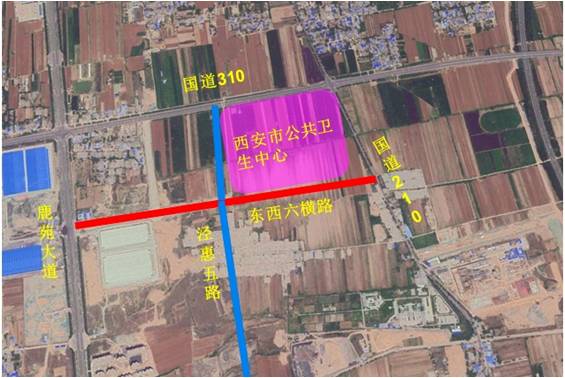 東西橫六路、涇惠五路緊鄰在建西安市公共衛(wèi)生中心,對該中心的建設(shè)施工及后期運(yùn)行起到重要服務(wù)功能。其中東西橫六路位于在建西安市公共衛(wèi)生中心南側(cè),工程為東西走向,西起已建成的鹿苑大道,東至西韓路,全長1500.806m,道路規(guī)劃紅線寬度40m,雙向六車道,瀝青混凝土路面。