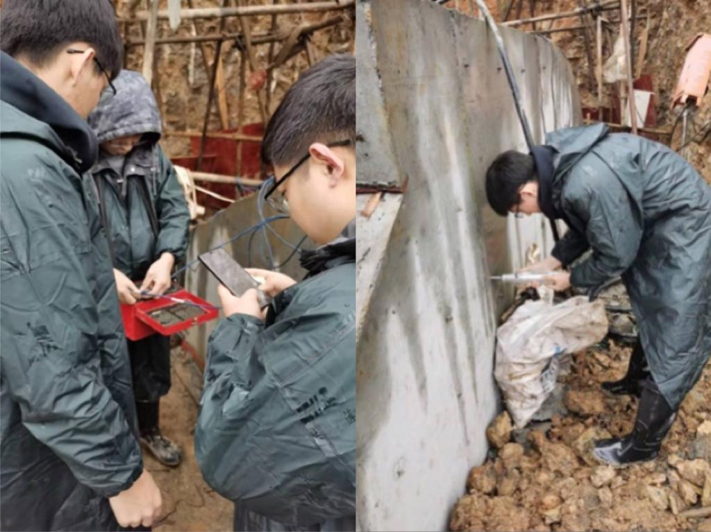 當日在蒙蒙細雨中,研發(fā)中心一行人對施工現(xiàn)場懸索橋錨碇混凝土、風纜施工位置及施工要點進行了耐心的技術(shù)交底,并對諸多施工難點提出合理化建議。與此同時,對現(xiàn)場錨固區(qū)混凝土進行了回彈測試,對主纜混凝土錨固區(qū)底部、中部及上部分別進行了壓力數(shù)據(jù)的采樣與記錄,確保巴山大峽谷玻璃懸索橋安全建成,保障后期順利運營。