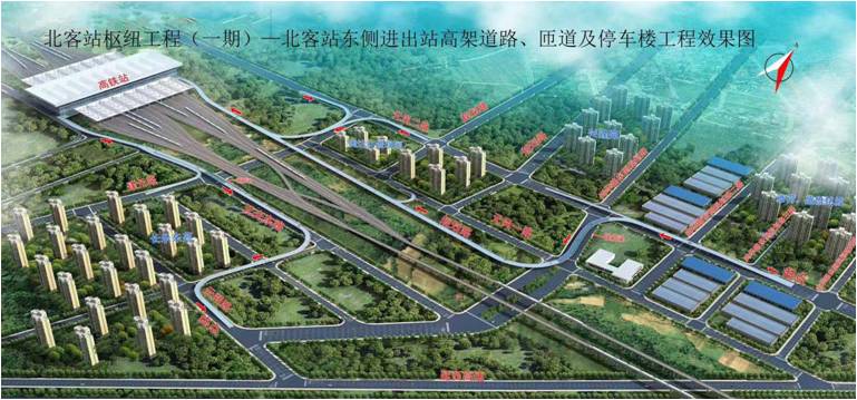 北客站樞紐工程(一期)——北客站東側(cè)進(jìn)出站高架道路、匝道及停車樓工程位于西安市經(jīng)濟(jì)技術(shù)開發(fā)區(qū)高鐵新城,緊鄰西安北客站,設(shè)計(jì)范圍為元鳳二路以南,高鐵站以東,元朔路以北,延西高速以西,設(shè)計(jì)內(nèi)容包含約6.5km高架(結(jié)構(gòu)形式為樁基、承臺(tái)、墩柱、現(xiàn)澆箱梁及鋼箱梁,主線寬度12.5m)、市政道路約2km、管網(wǎng)設(shè)計(jì)、綠化提升,工程費(fèi)用為11.74億元。