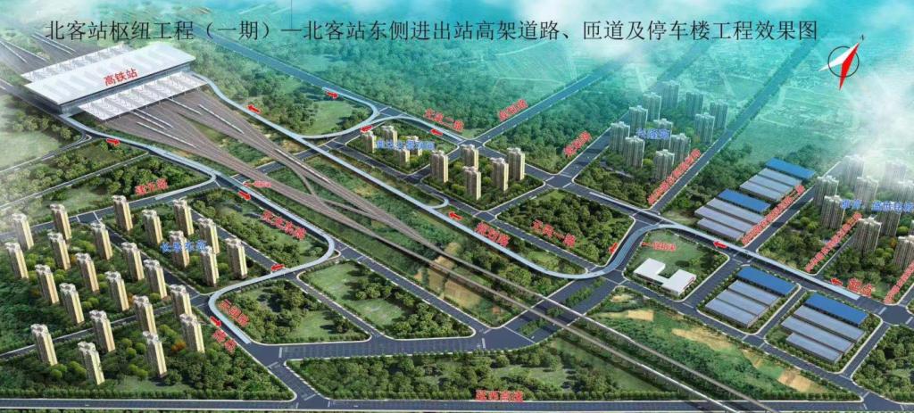 北客站樞紐工程是連接北客站和高鐵新城主干路網(wǎng)、西銅快速路的重要交通節(jié)點工程,是實現(xiàn)北客站與外圍區(qū)域快速銜接的重要交通動脈。本工程作為“十四運”保障性項目,包含6.5km城市高架橋梁、2km市政道路及管網(wǎng)、景觀綠化工程。