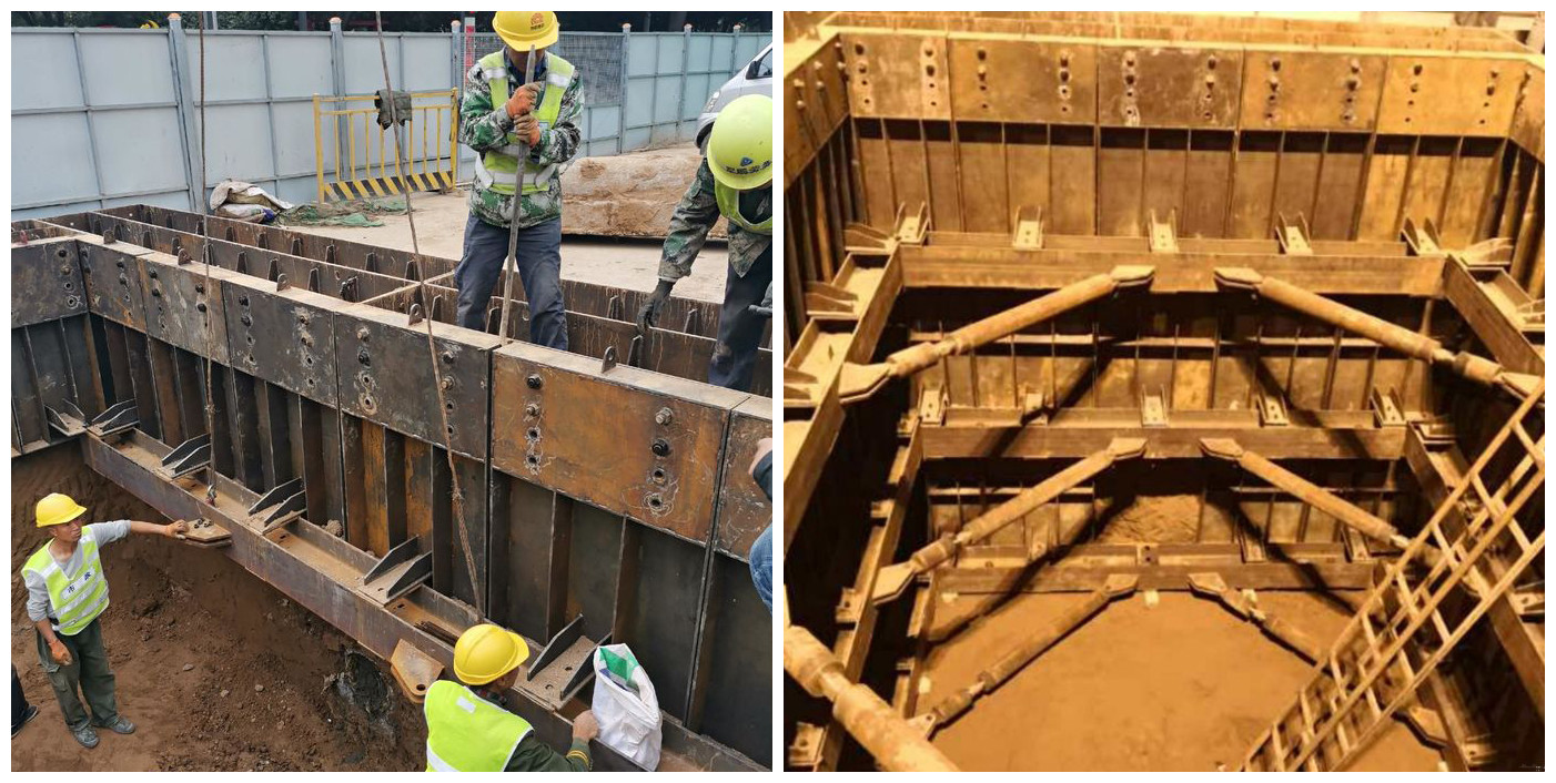 裝配式循環(huán)工作井支護裝備,是一種代替?zhèn)鹘y(tǒng)逆做法鋼筋砼工作井的新技術、新工藝。整個工作井采用全鋼形式,現場基坑開挖后,可立即現場拼裝,實現從冠梁到整體圍護結構一體化安裝,安裝速度快,工期短,可循環(huán)利用。該技術具備以下優(yōu)勢:1、環(huán)保性。符合可持續(xù)發(fā)展理念,綠色環(huán)保,節(jié)能減排,可循環(huán)利用;2、便捷性。整體尺寸可調節(jié),冠梁、支護板均可靈活拼接;3、靈活性?,F場遇各類復雜地下管線可靈活拆裝繞開,應用范圍廣;4、安全性。整體結構建模驗算,結構安全,連接牢固。