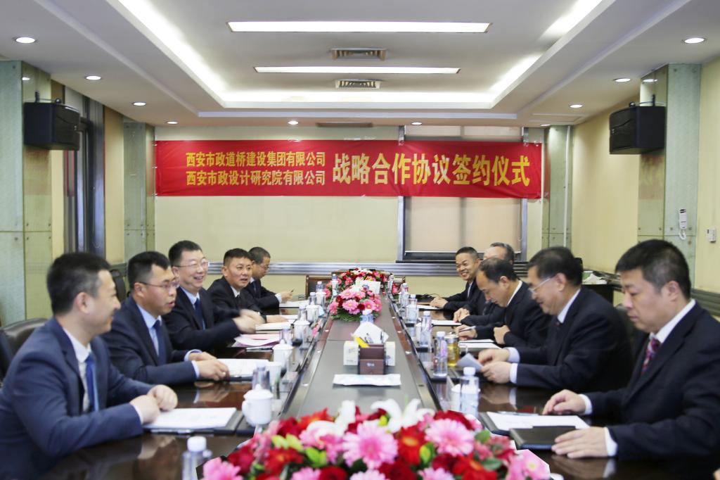 4月30日上午,我公司與西安市政道橋建設(shè)集團有限公司舉行戰(zhàn)略合作簽約儀式。公司黨總支書記、董事長兼總經(jīng)理高中俊、副總經(jīng)理王社平、總工程師杜百計及相關(guān)部門負責(zé)人,市政道橋集團黨委書記、董事長薛健、總經(jīng)理劉衛(wèi)軍、總經(jīng)理助理張滿紅等出席并見證簽約。