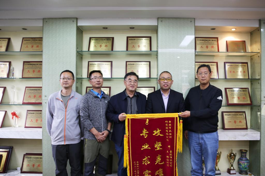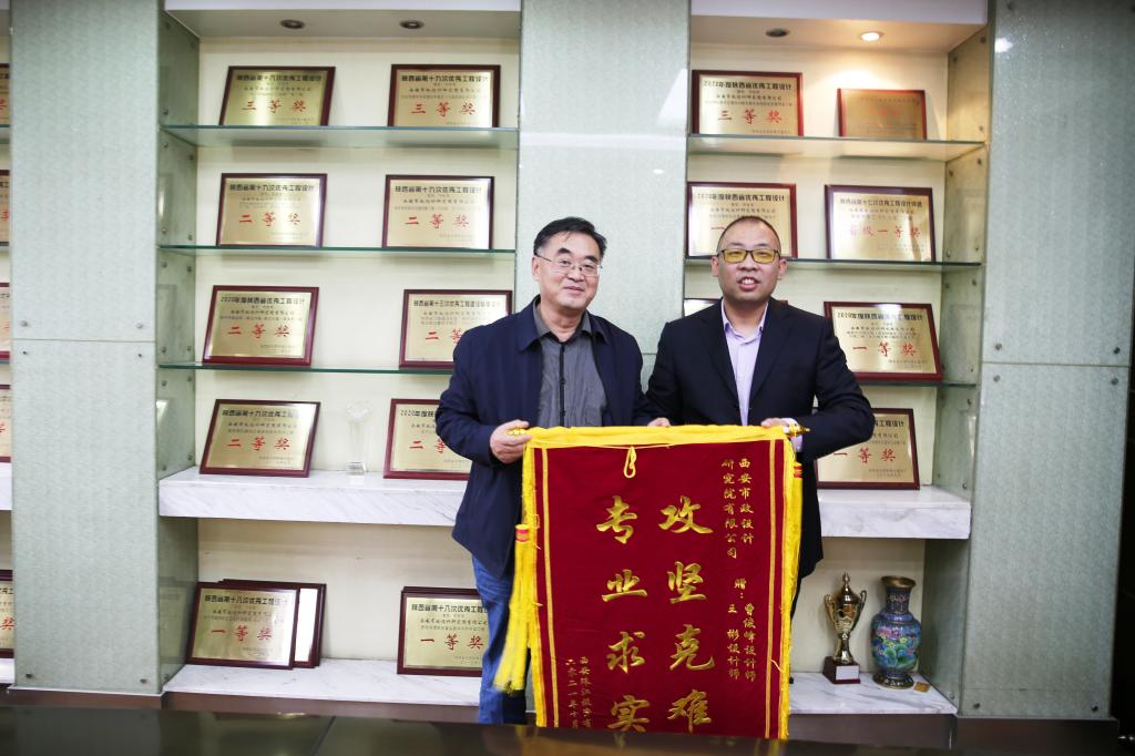5月18日下午,西安珠江投資有限公司設(shè)計部副部長富博蒞臨我公司,將一面寫有“攻堅克難 專業(yè)求實”的錦旗送到我公司副總經(jīng)理王社平的手中,以感謝“西安珠江新城項目三期規(guī)劃路過街管溝工程”項目設(shè)計組成員的精心設(shè)計、優(yōu)質(zhì)服務(wù)和辛苦付出,并表達(dá)了雙方開展更深層次合作的期望。