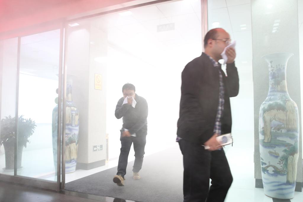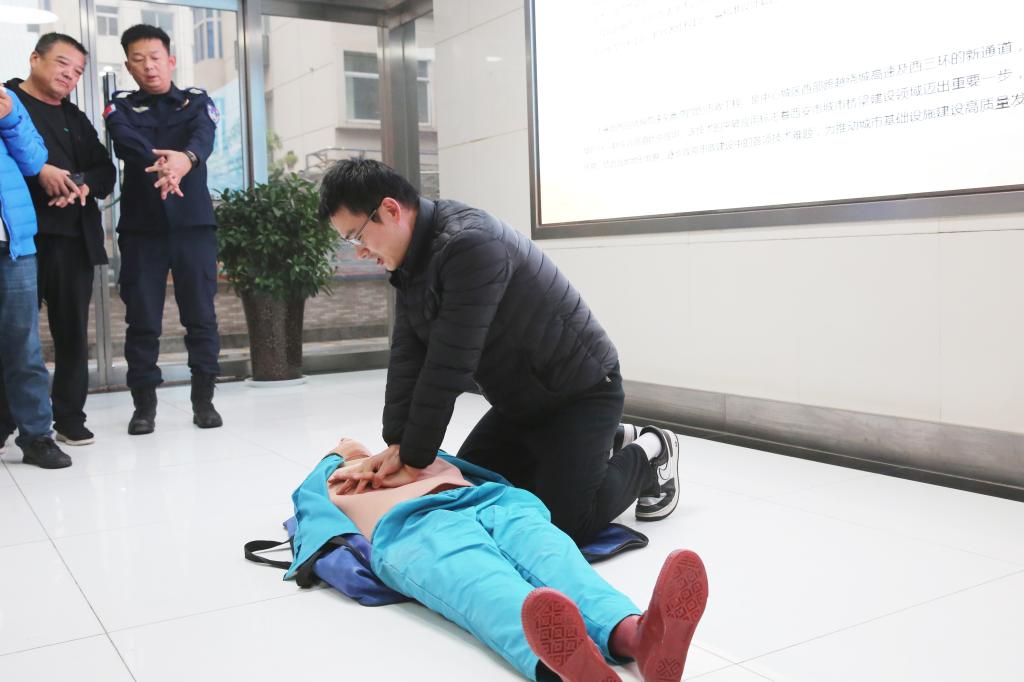 理論培訓(xùn)結(jié)束后,隨著火災(zāi)緊急疏散警報器響起,參訓(xùn)人員在應(yīng)急指揮人員的指引下,手持濕毛巾,穿過濃煙滾滾的逃生通道,切身體驗了火災(zāi)逃生過程,進一步提高了安全意識。隨后,參訓(xùn)人員在趙剛教官的指導(dǎo)下進行了滅火器實操演練,并學(xué)習(xí)了心肺復(fù)蘇操作流程和氣道梗阻的急救方法,參訓(xùn)人員認真聆聽,積極參與互動,通過模擬操作加深了對急救知識的理解。